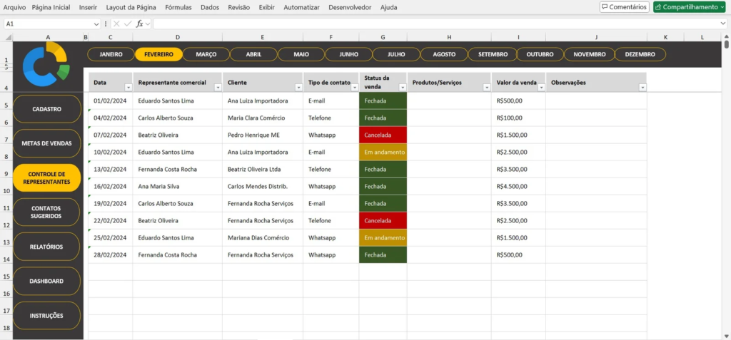 Conhecendo a Planilha de Controle para Representantes Comerciais em Excel