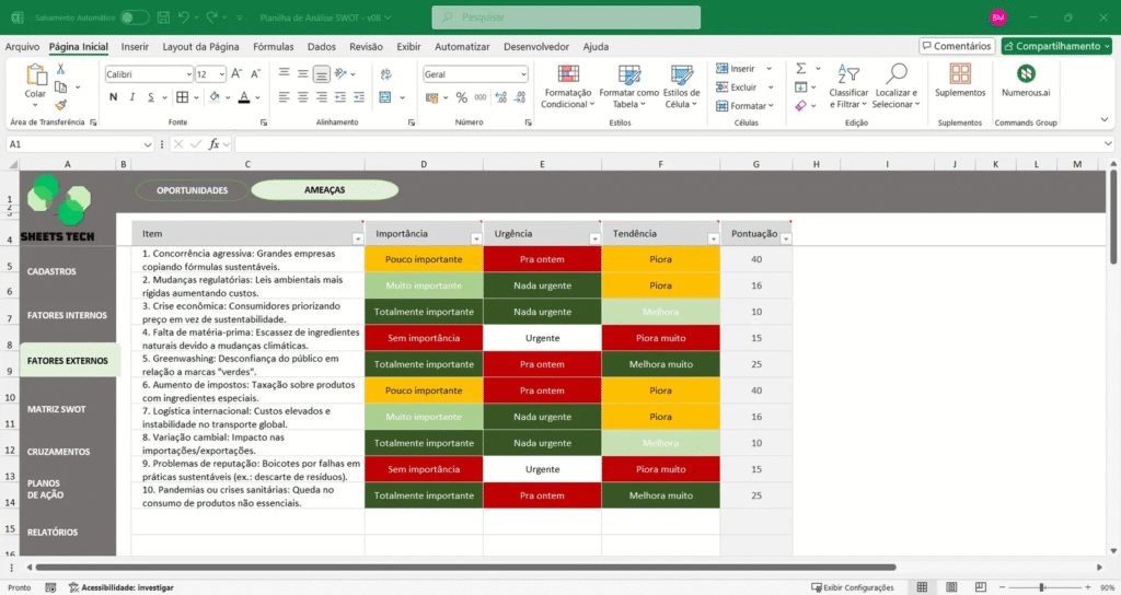 Para maximizar os benefícios da Análise SWOT, integrar o uso de planilhas de Excel pode ser uma solução eficaz. As planilhas permitem um acompanhamento detalhado e uma organização visual dos dados, facilitando a tomada de decisões informadas.