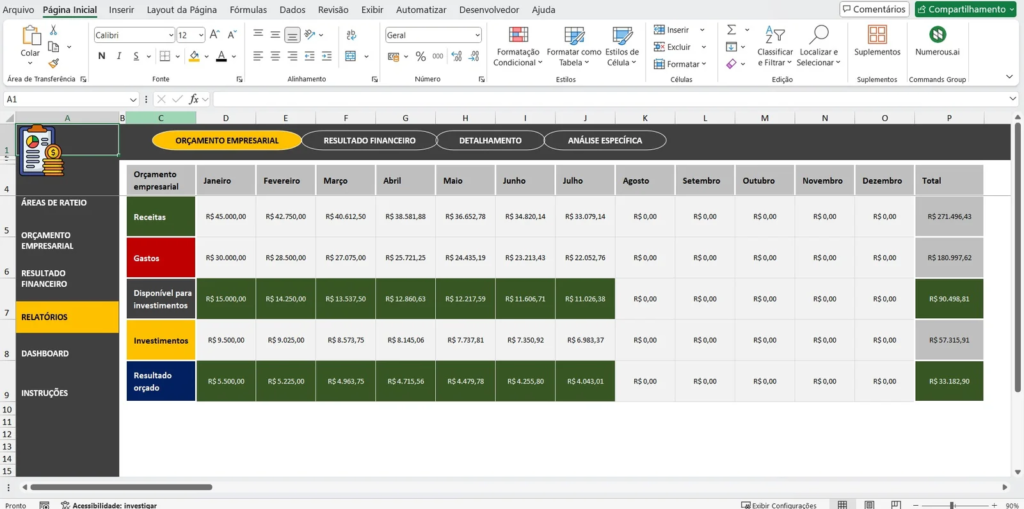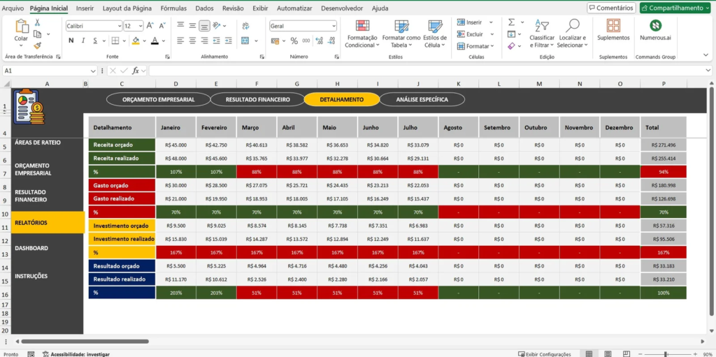 Uma planilha inteligente pode resolver esses problemas ao oferecer uma visão clara e consolidada das finanças da empresa, permitindo uma melhor identificação de áreas problemáticas e facilitando a correção de rotas.