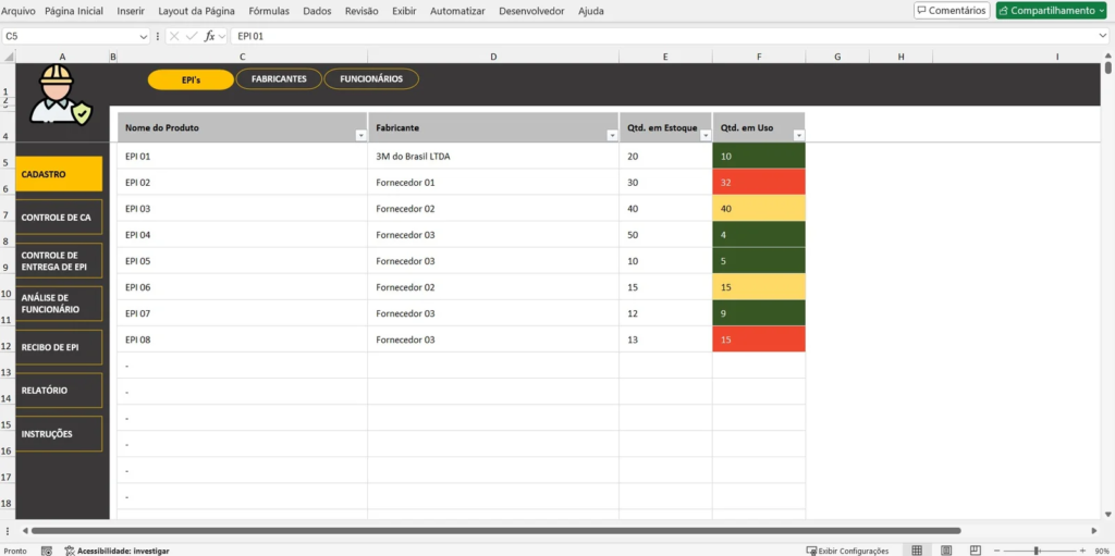 Uma planilha de controle bem estruturada pode fazer toda a diferença na gestão de EPIs. Com ela, é possível: