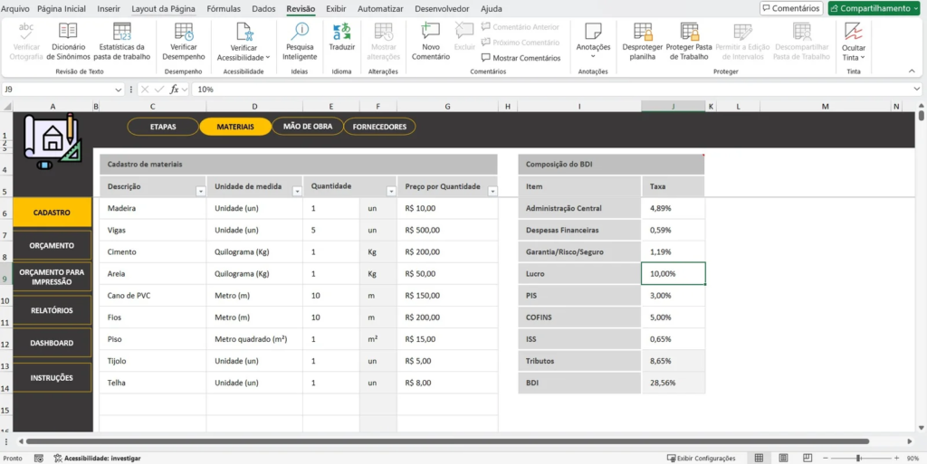 Ferramentas como a Planilha de Controle de Obra Completa permitem calcular automaticamente o custo total, incluindo a margem de lucro, e facilitam negociações com os clientes.