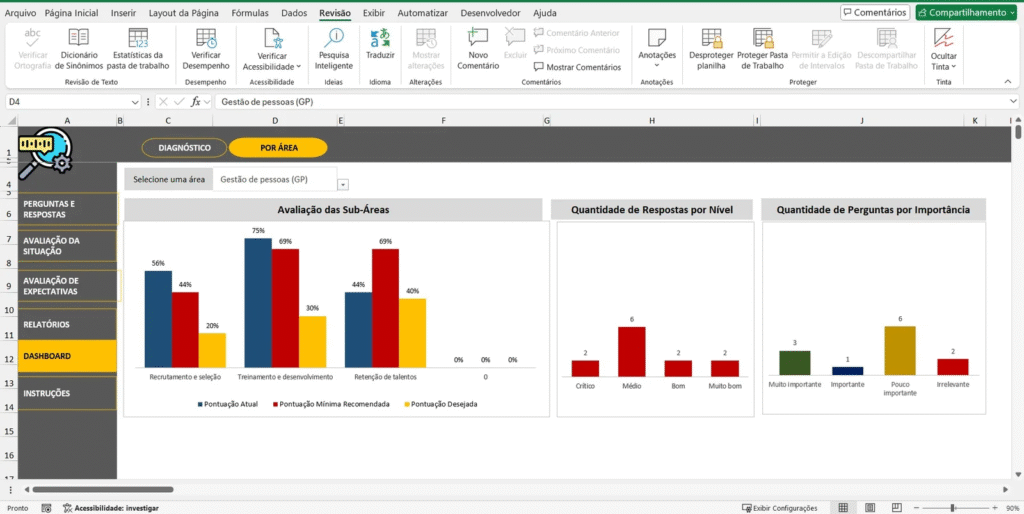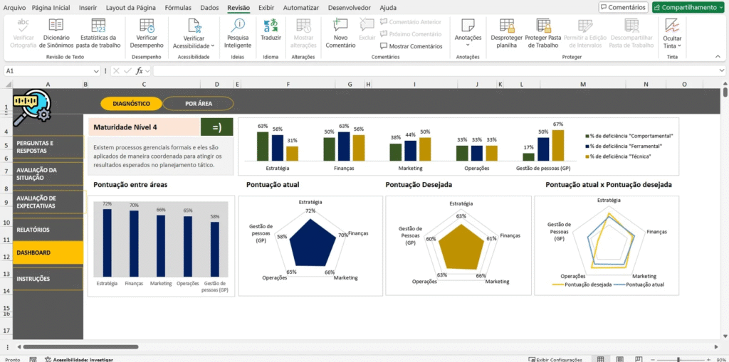 Ao utilizar uma planilha para diagnóstico empresarial, você pode avaliar diferentes áreas de gestão, como: