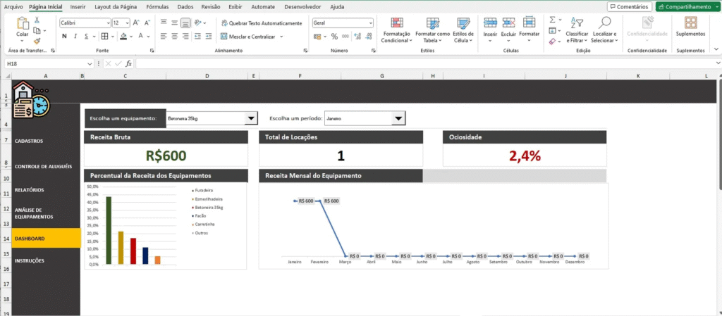 A Planilha Para Controle De Locação De Equipamentos Em Excel fornece as ferramentas necessárias para gerenciar suas finanças de forma mais eficaz, transformando a saúde financeira de sua empresa.