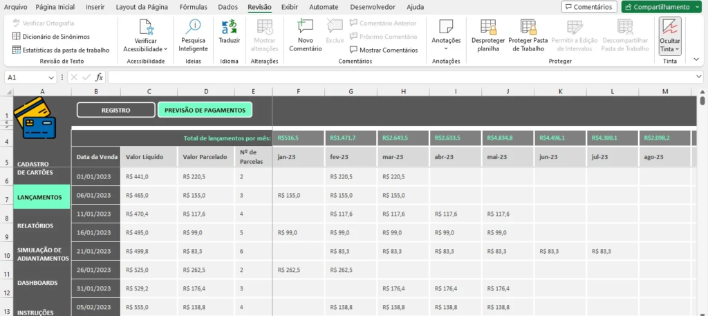 - Análise de Performance: Identificar tendências e padrões nas vendas por cartão de crédito pode ser difícil sem ferramentas adequadas. Com recursos de análise embutidos, uma planilha permite uma avaliação detalhada do desempenho, facilitando a identificação de áreas de melhoria.