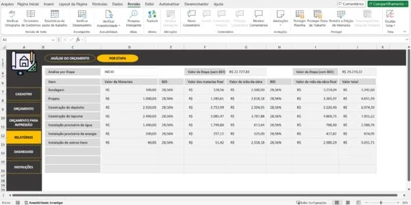 Um dos aspectos mais críticos da gestão de obras é o controle do fluxo de caixa. Uma planilha bem estruturada permite um acompanhamento preciso das entradas e saídas financeiras, ajudando a evitar surpresas desagradáveis e garantindo que o projeto se mantenha dentro do orçamento.