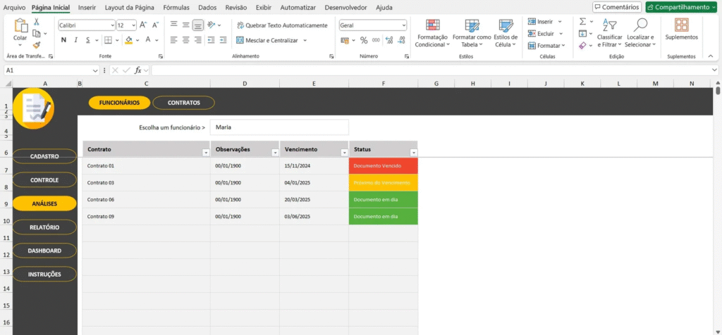 Uma planilha bem projetada resolve esses problemas, oferecendo uma visão centralizada e atualizada de todos os contratos, melhorando a comunicação interna e atualizando processos de gestão.