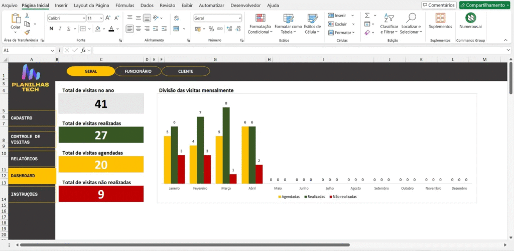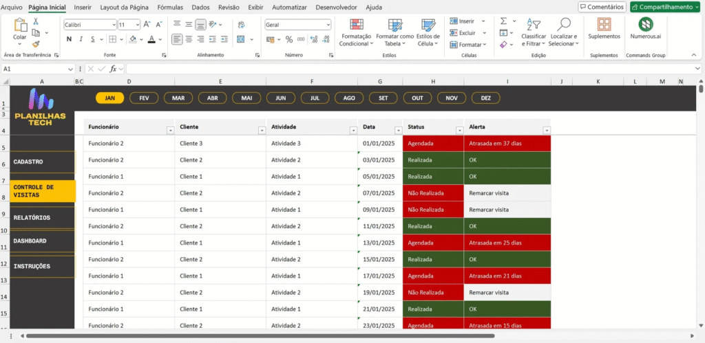 Uma planilha profissional de controle de visitas a clientes pode ajudar a evitar esses problemas, organizando as informações de maneira lógica e acessível, permitindo que sua equipe se concentre em atividades mais estratégicas.