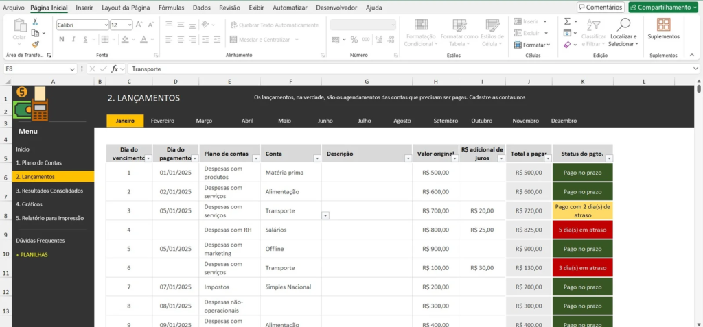 - Gestão de Contas Fixas: Controle de despesas como aluguel, internet e salários, essenciais para o orçamento mensal.