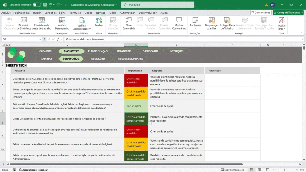Customização de Relatórios: As planilhas permitem uma customização total dos relatórios, possibilitando que você destaque as métricas mais relevantes para o seu negócio. Você pode facilmente ajustar gráficos e tabelas para apresentar as informações de maneira clara e objetiva.