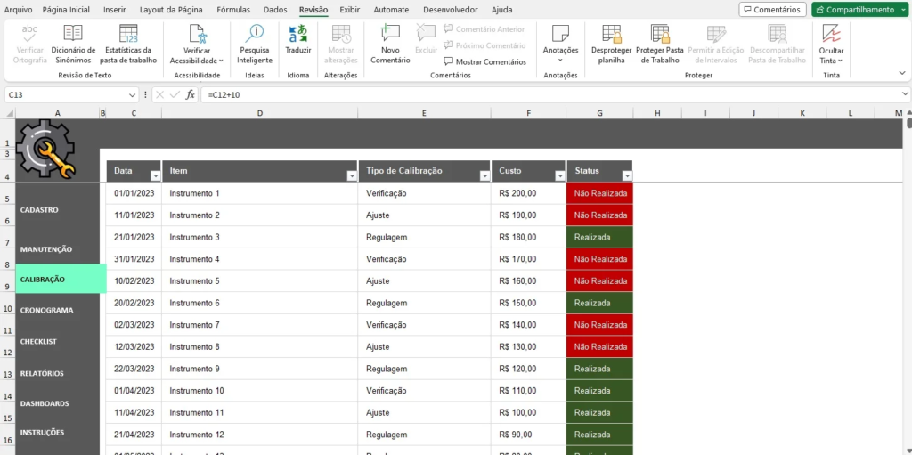 A Planilha de Manutenção Preventiva e Calibração em Excel disponibiliza diversas funcionalidades que facilitam a gestão dessas atividades: