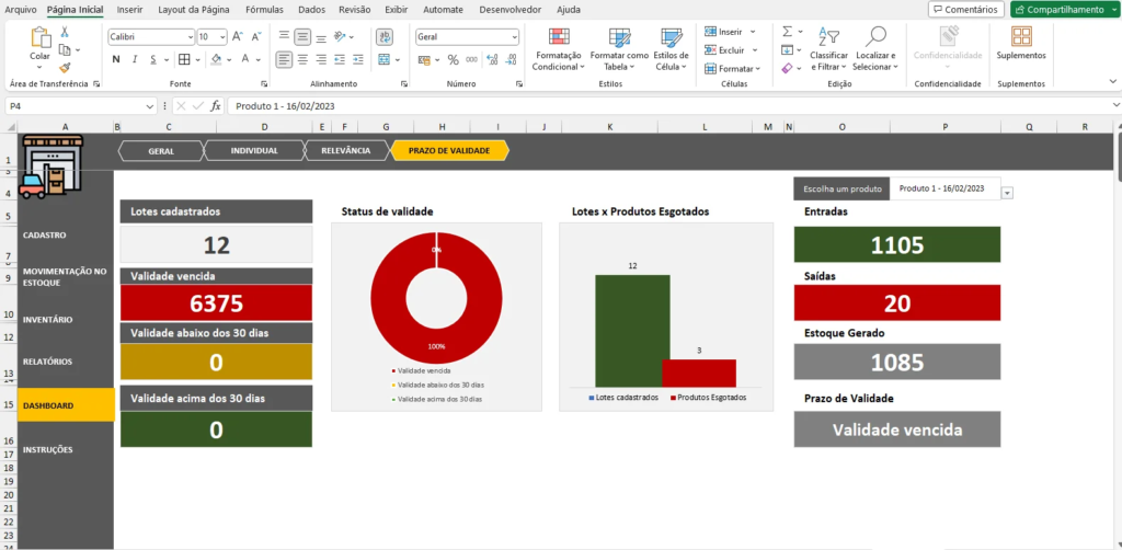 A Planilha Controle de Estoque com Prazo de Validade em Excel foi desenvolvida para oferecer uma solução completa e prática para o gerenciamento de estoques com controle de validade. Entre suas principais funcionalidades, destacam-se: