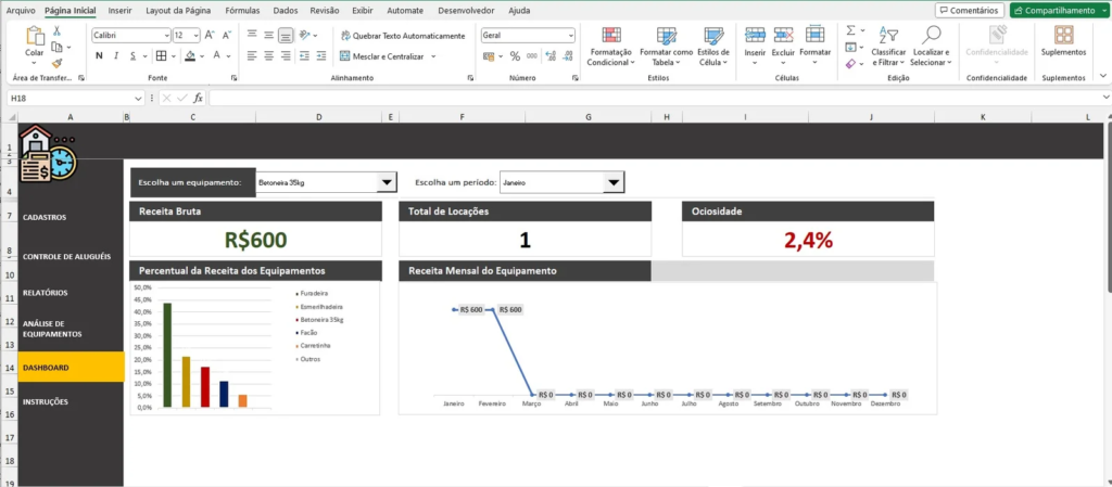 Entender quais equipamentos são mais rentáveis é essencial. Com os relatórios da planilha, é possível identificar os itens com melhor desempenho.