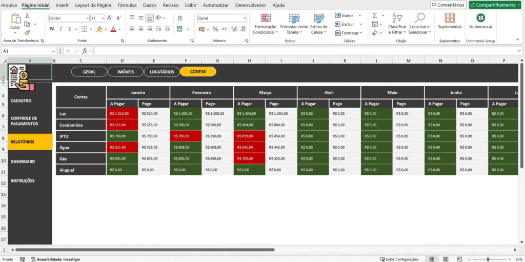 Uma planilha completa resolve esses gargalos ao oferecer um sistema coeso para rastrear, registrar e gerenciar todas as transações.