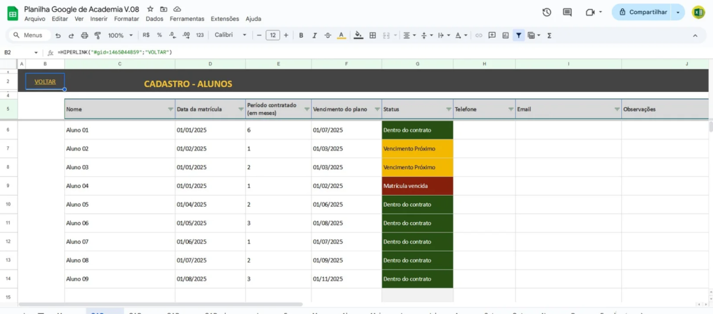 - Personalização: Adapte a planilha às necessidades específicas da sua academia, incluindo sua identidade visual.