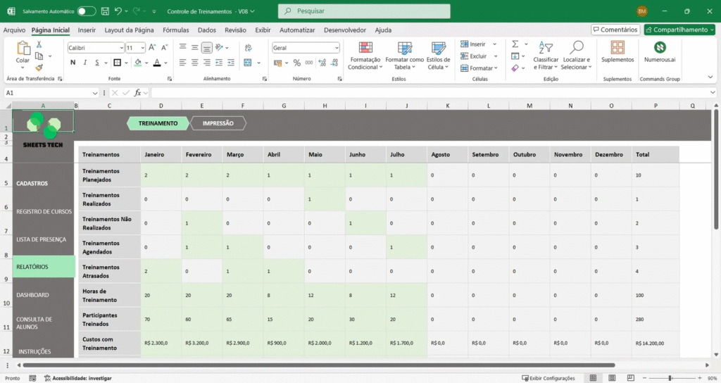Uma solução prática para quebrar esse ciclo é adotar uma planilha para controle de treinamento em Excel que centraliza todas as informações em um único lugar, facilitando o acesso e a atualização dos dados por toda a equipe.