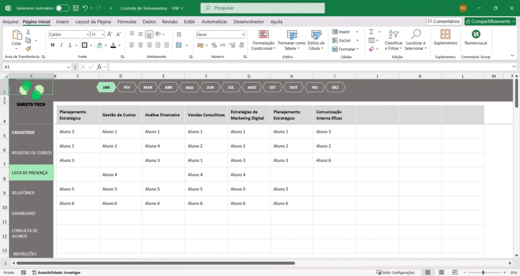 Uma Planilha Para Controle De Treinamento Em Excel que incorpora automação pode liberar sua equipe de RH para focar em atividades mais estratégicas. Automação permite que atualizações em massa sejam realizadas rapidamente, reduzindo a carga de trabalho manual.