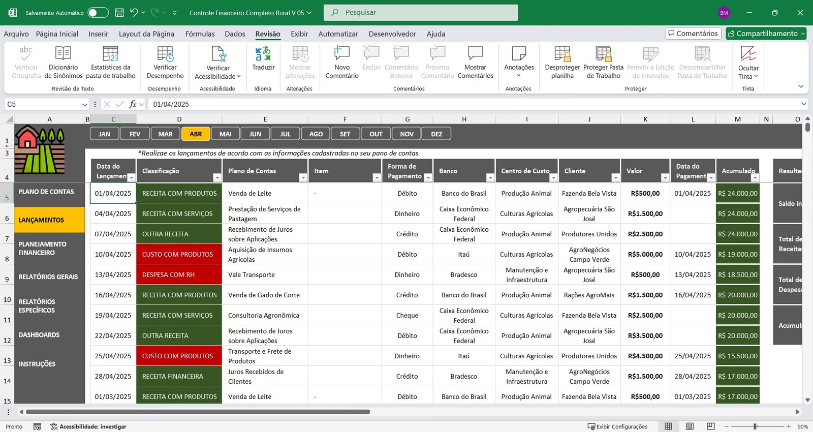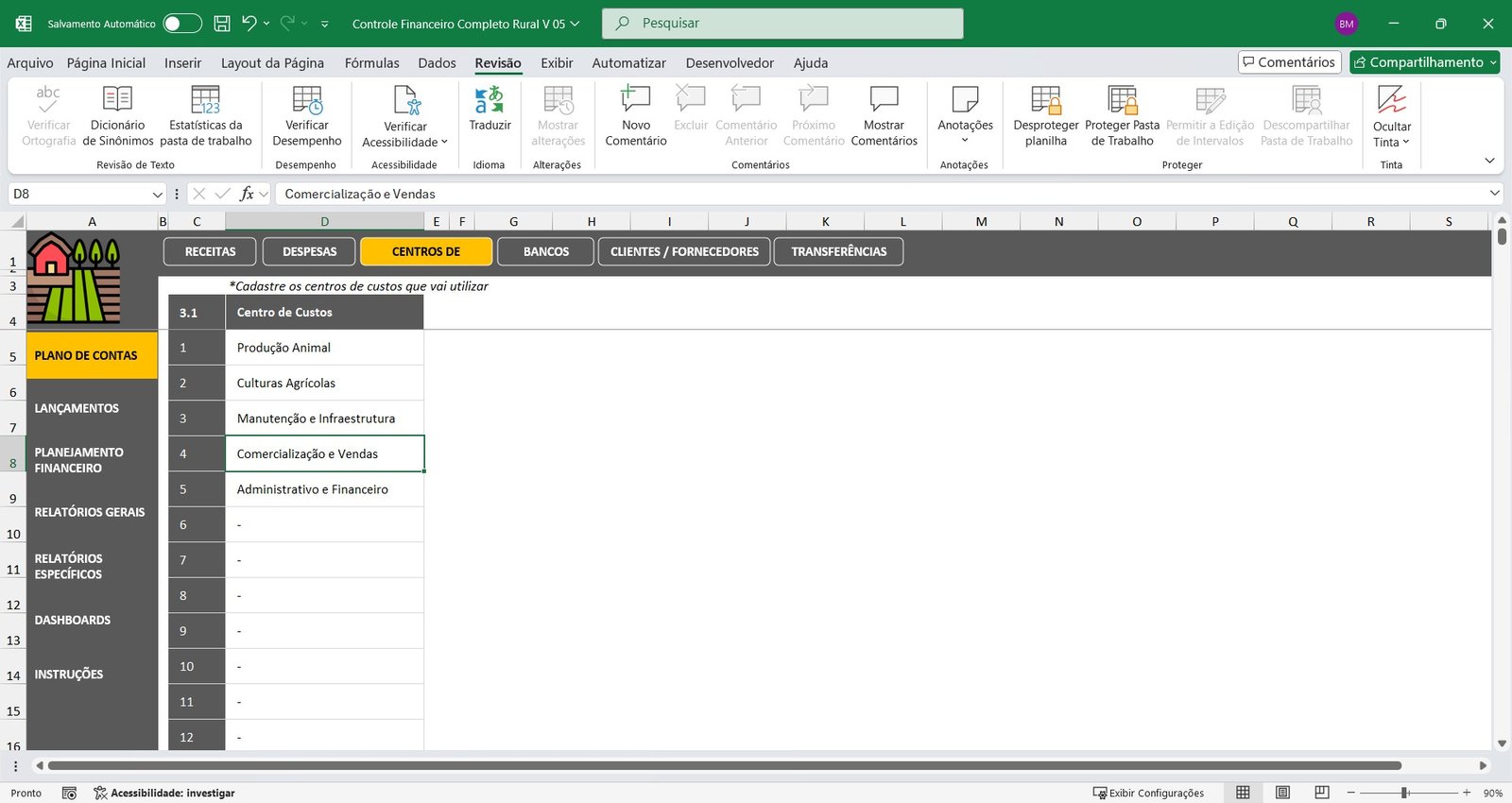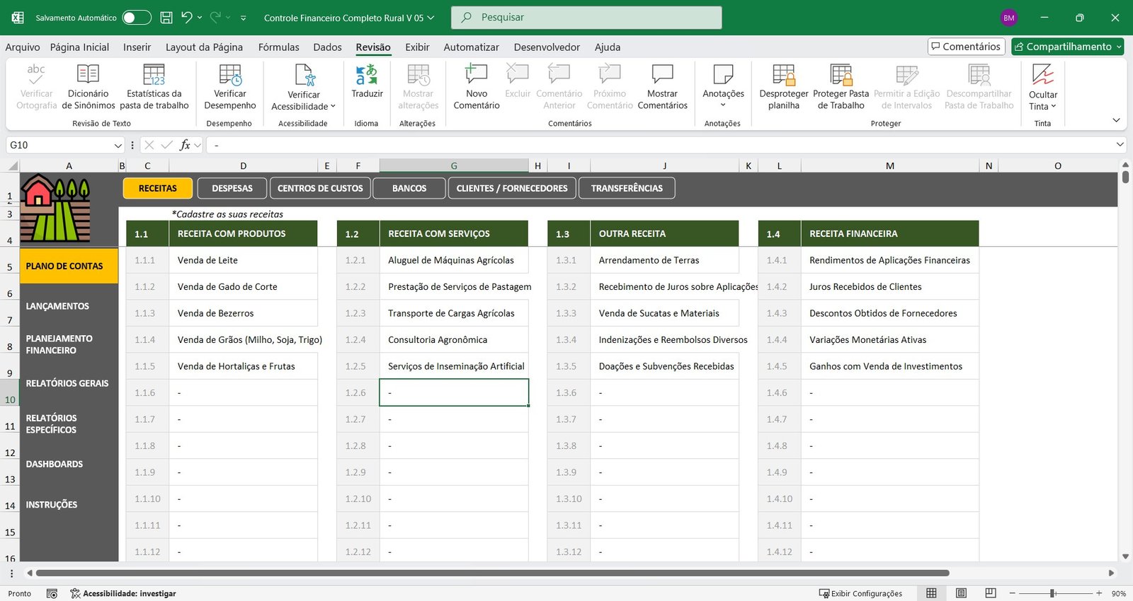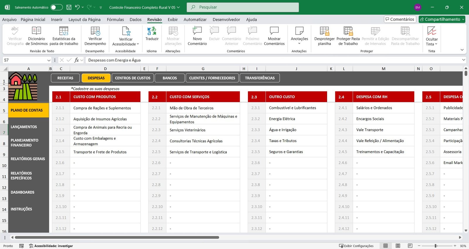 Planilha de Controle Financeiro para Propriedades Rurais