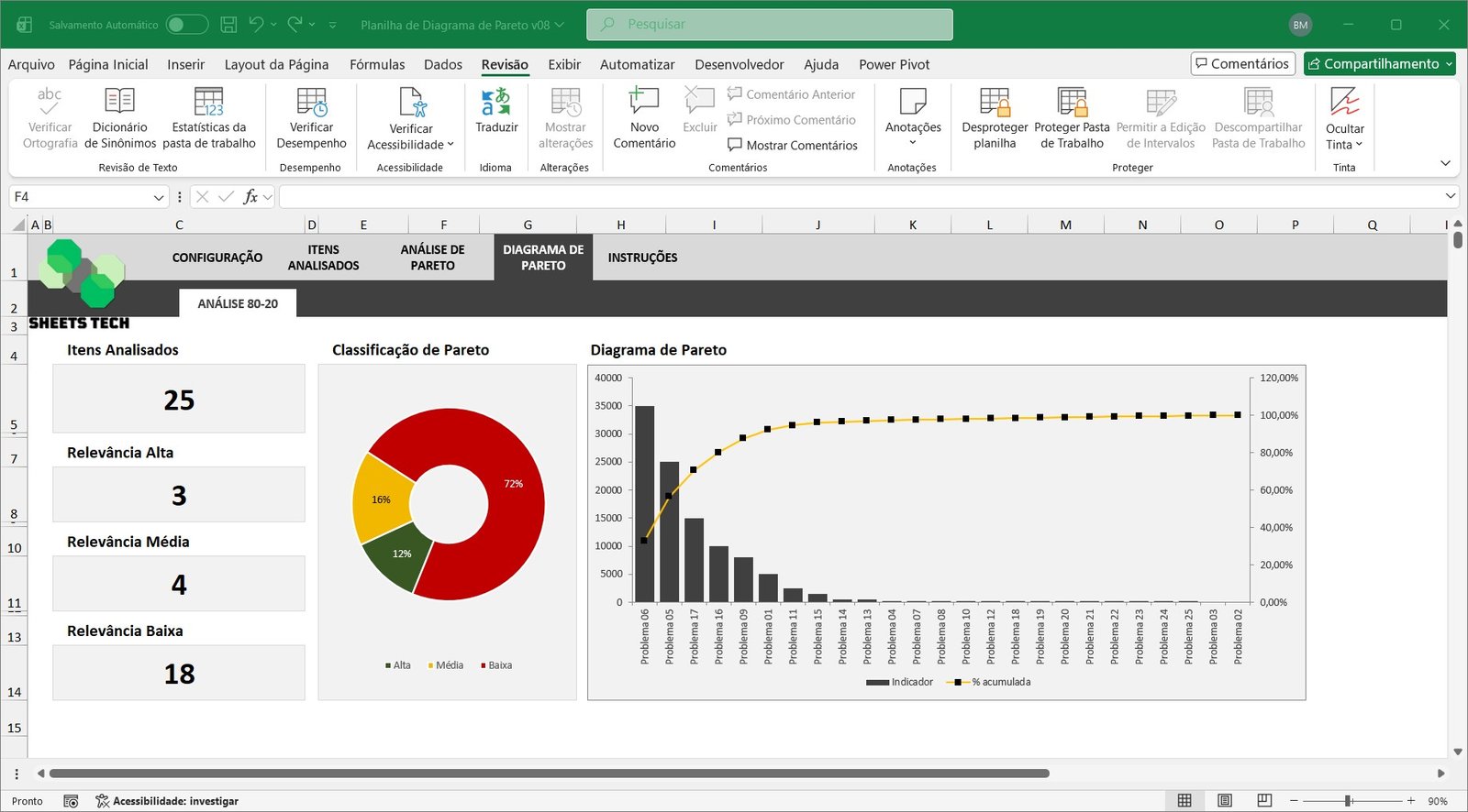 Descubra como aplicar o Diagrama de Pareto (80/20) de forma prática e eficiente com nossa planilha pronta em Excel, desenvolvida para quem busca identificar problemas, priorizar ações e aumentar resultados com base em dados reais.