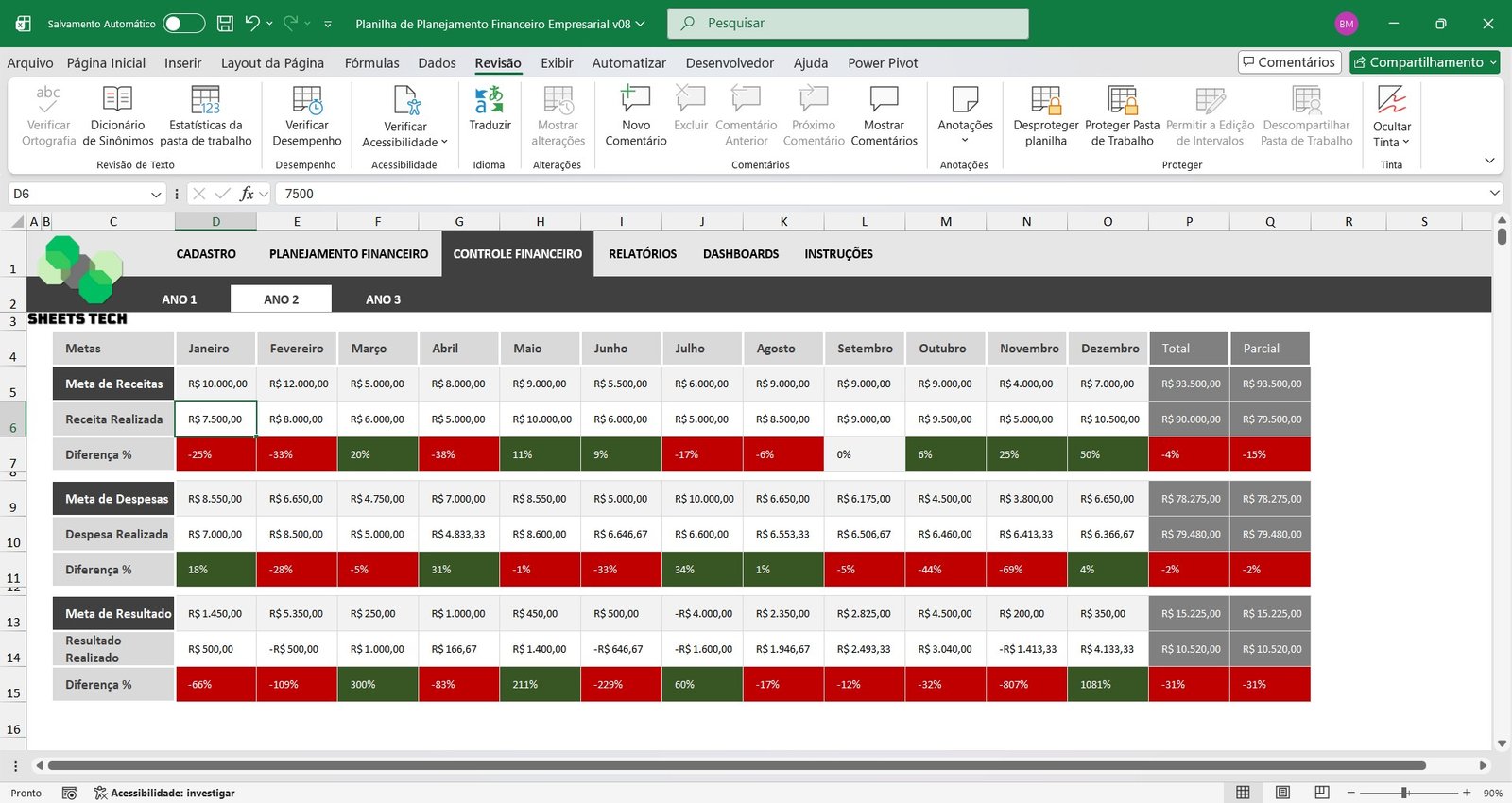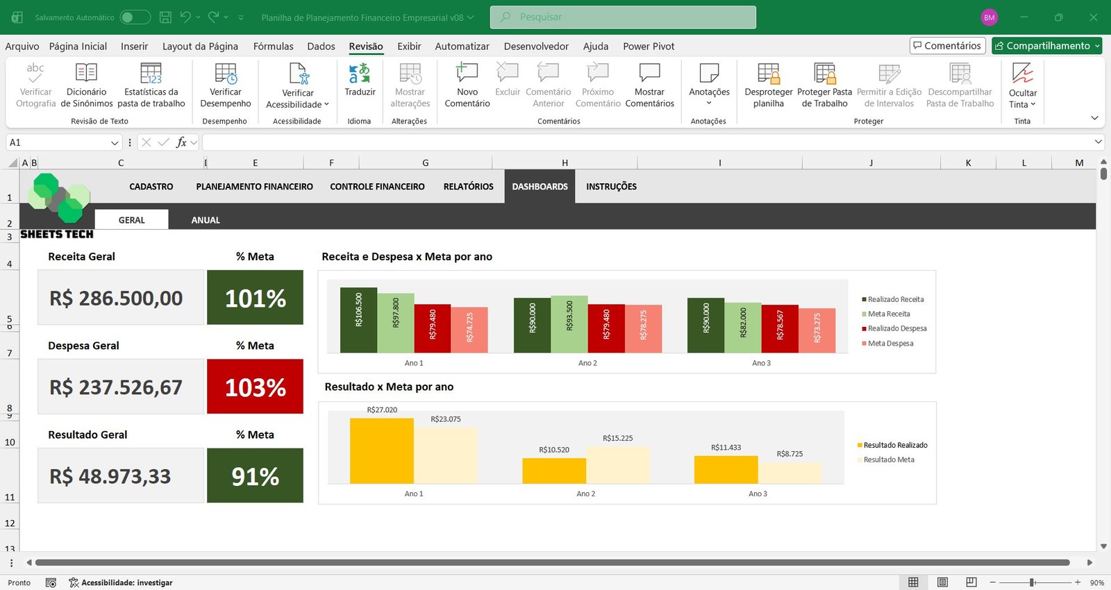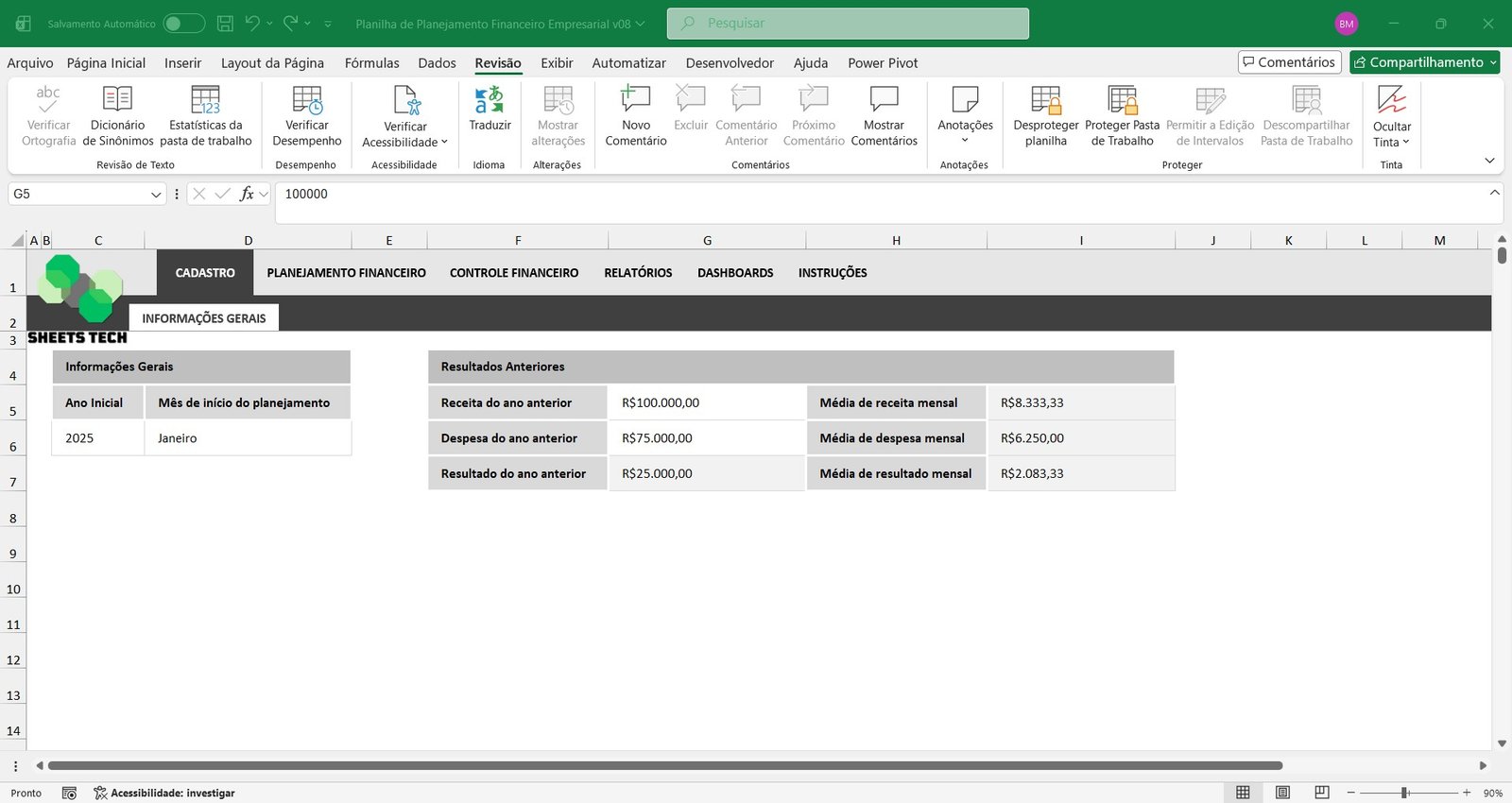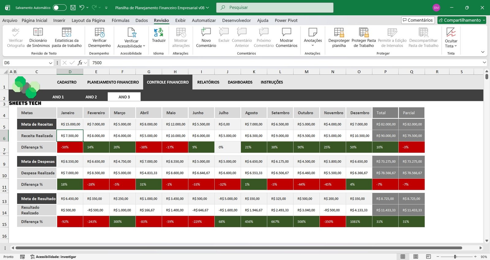 Desenvolvida para empresas que desejam ter controle financeiro completo, essa planilha permite planejar, acompanhar e analisar receitas, despesas e resultados de forma simples, automatizada e eficiente.