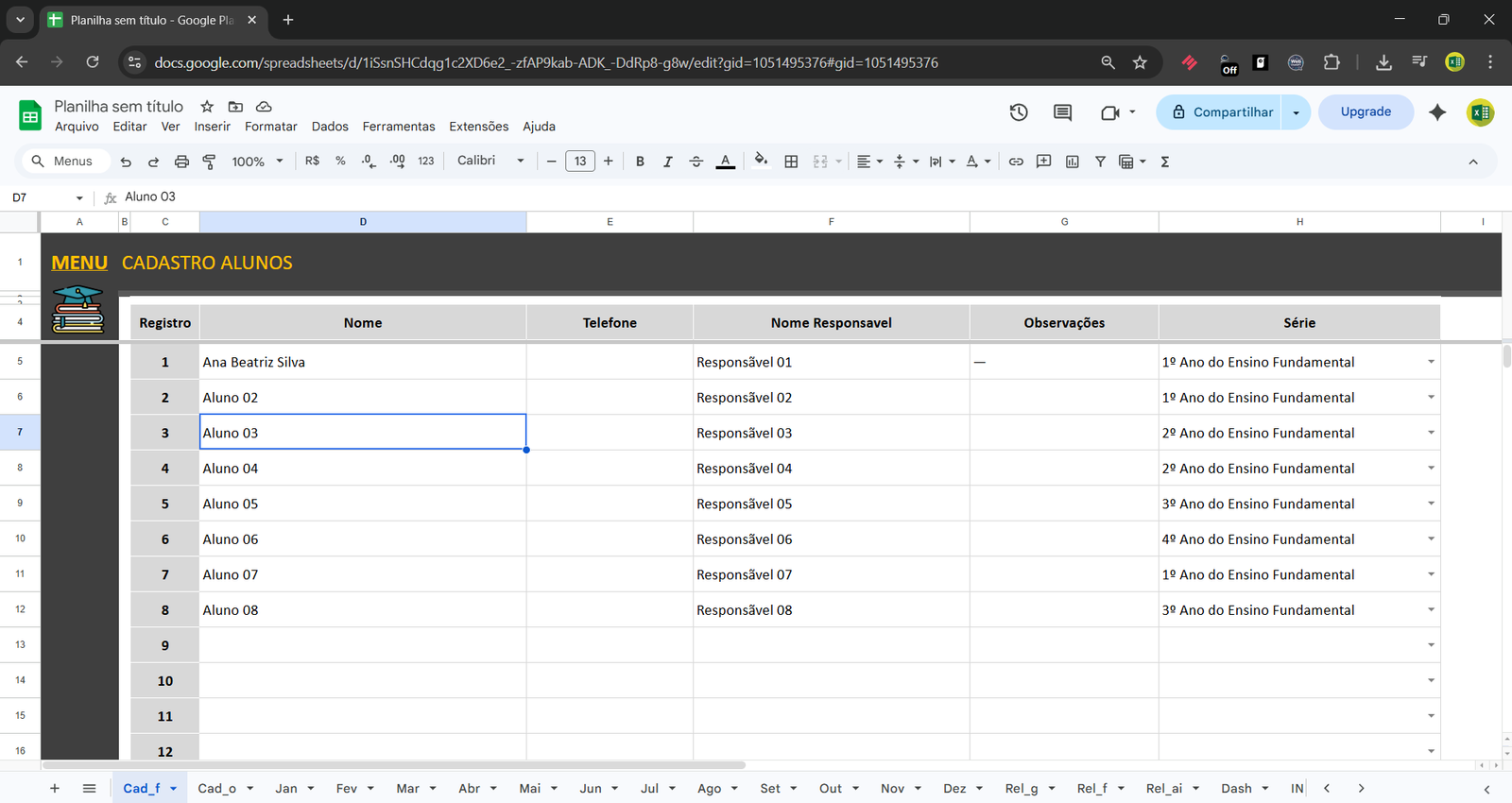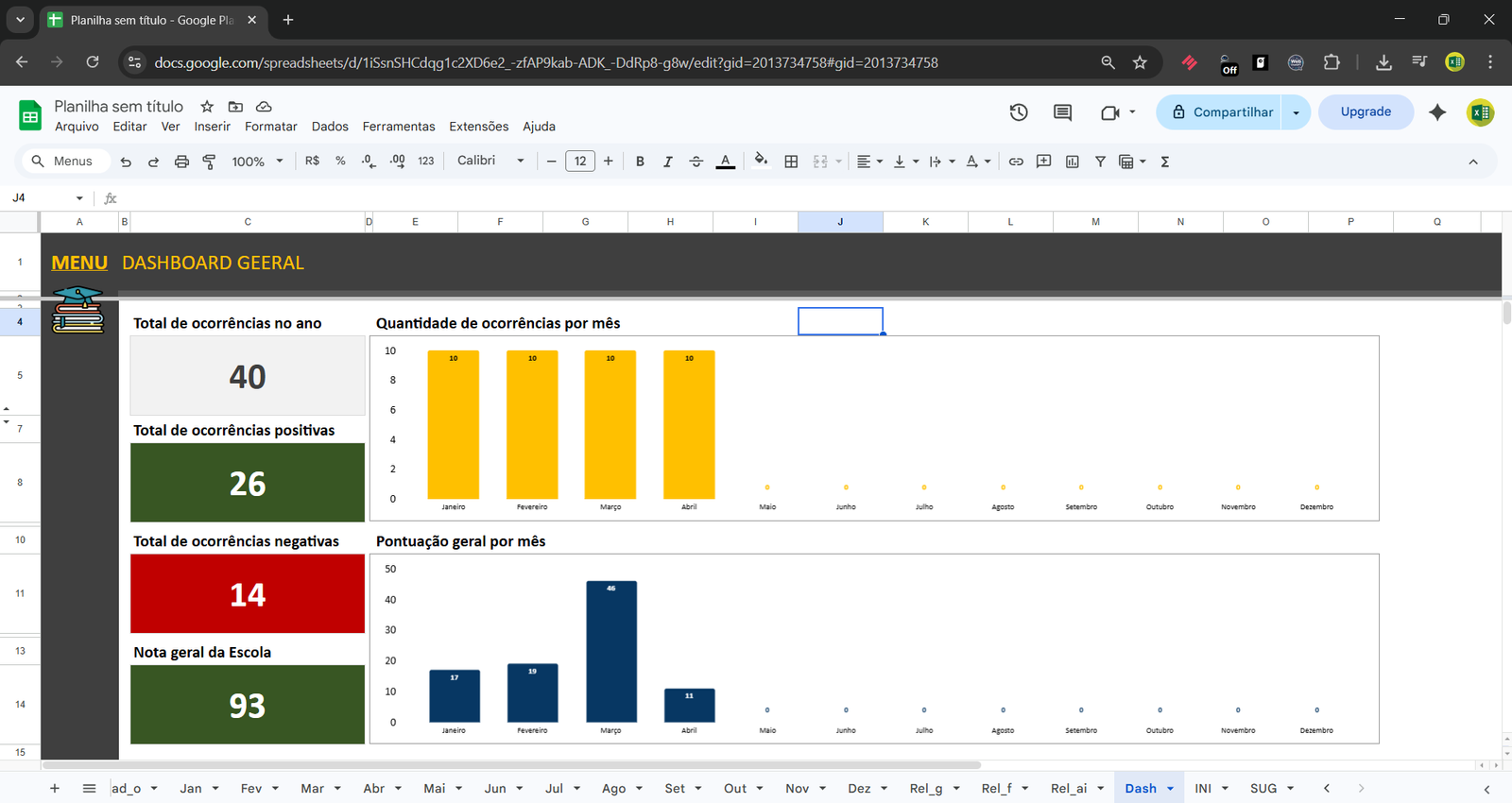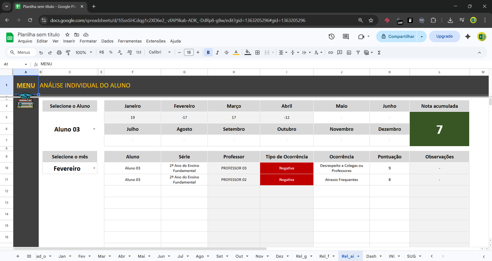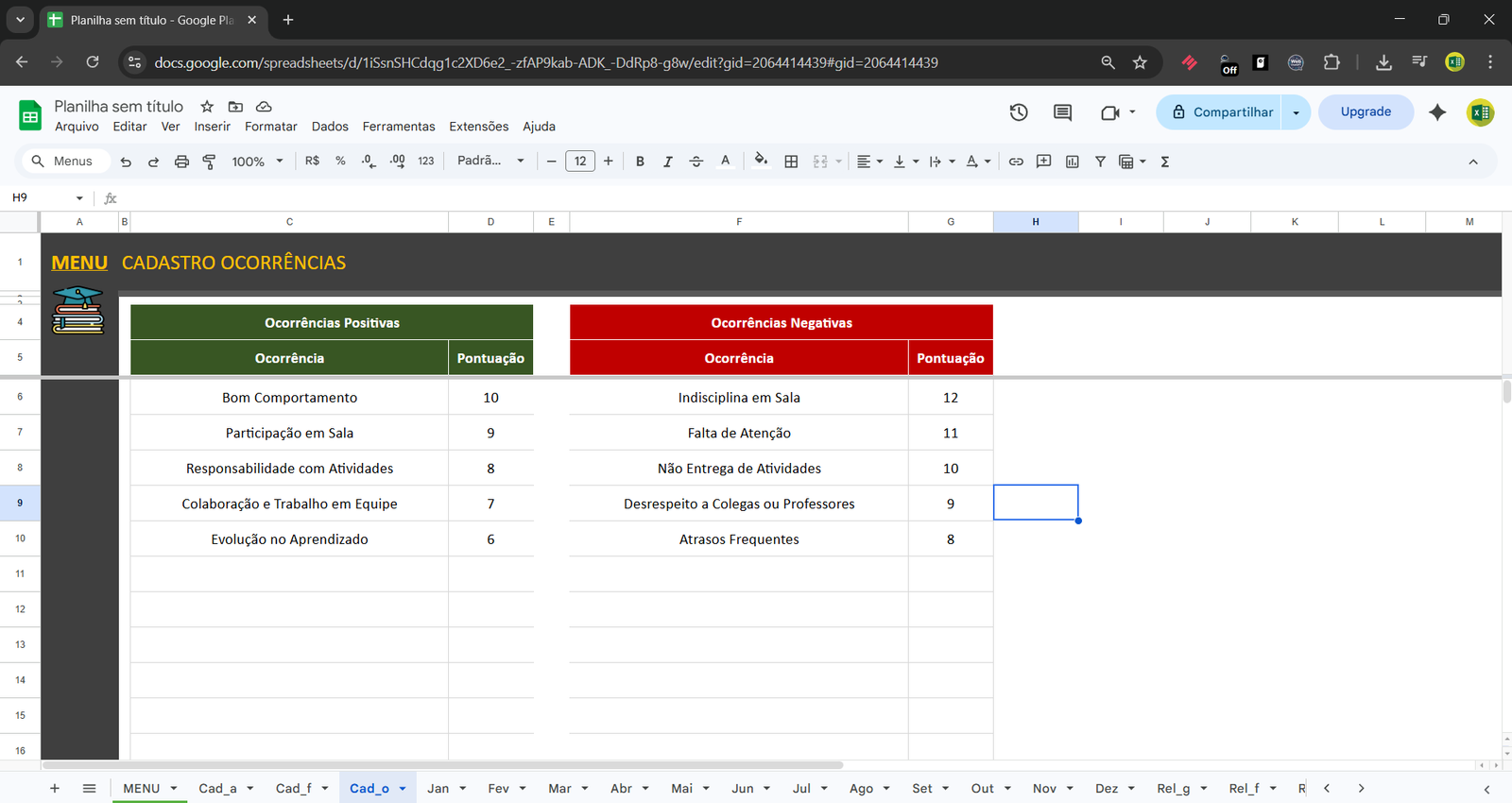 Planilha de Controle de Ocorrências Escolares no Google Sheets