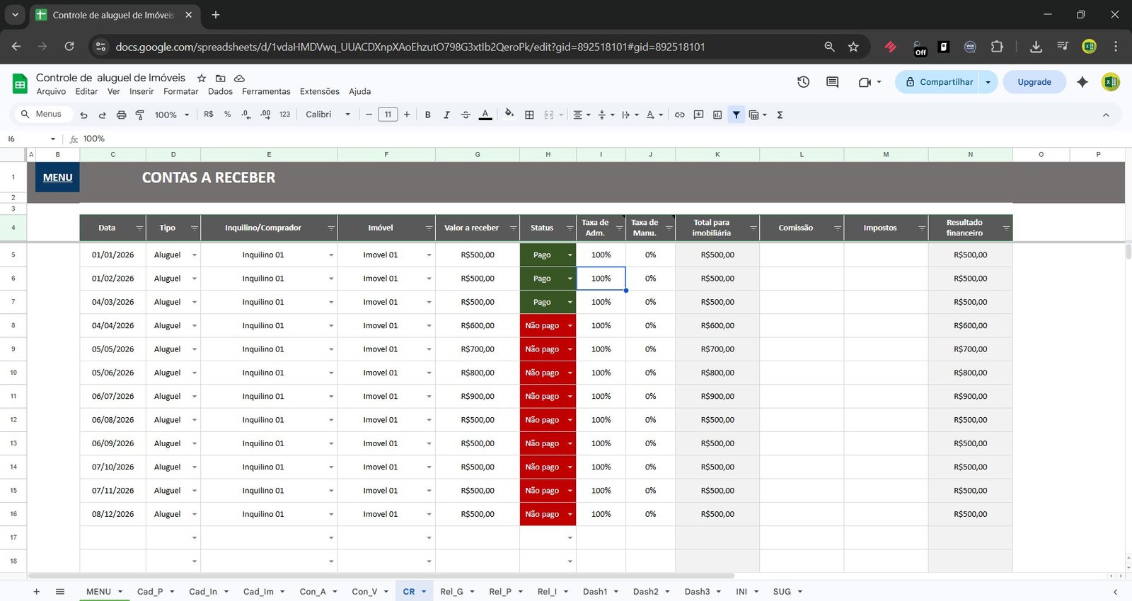 Com essa planilha de gestão imobiliária no Google Sheets, você controla: