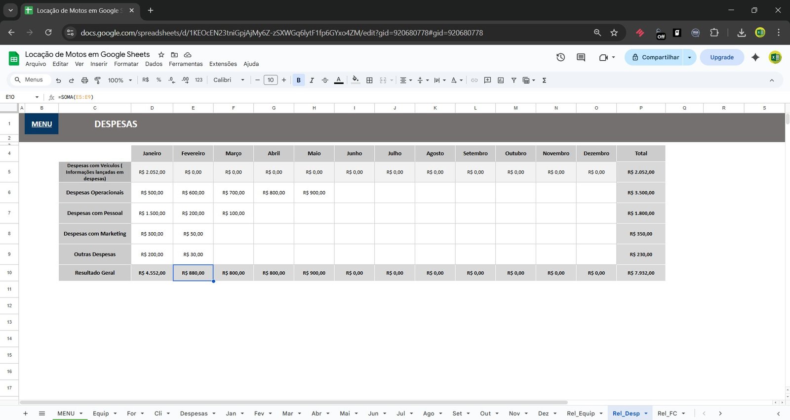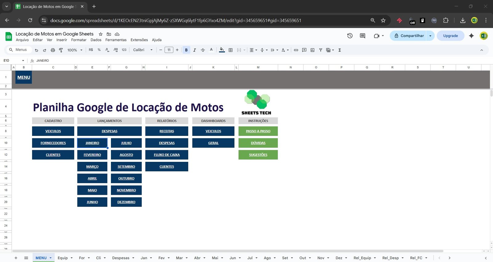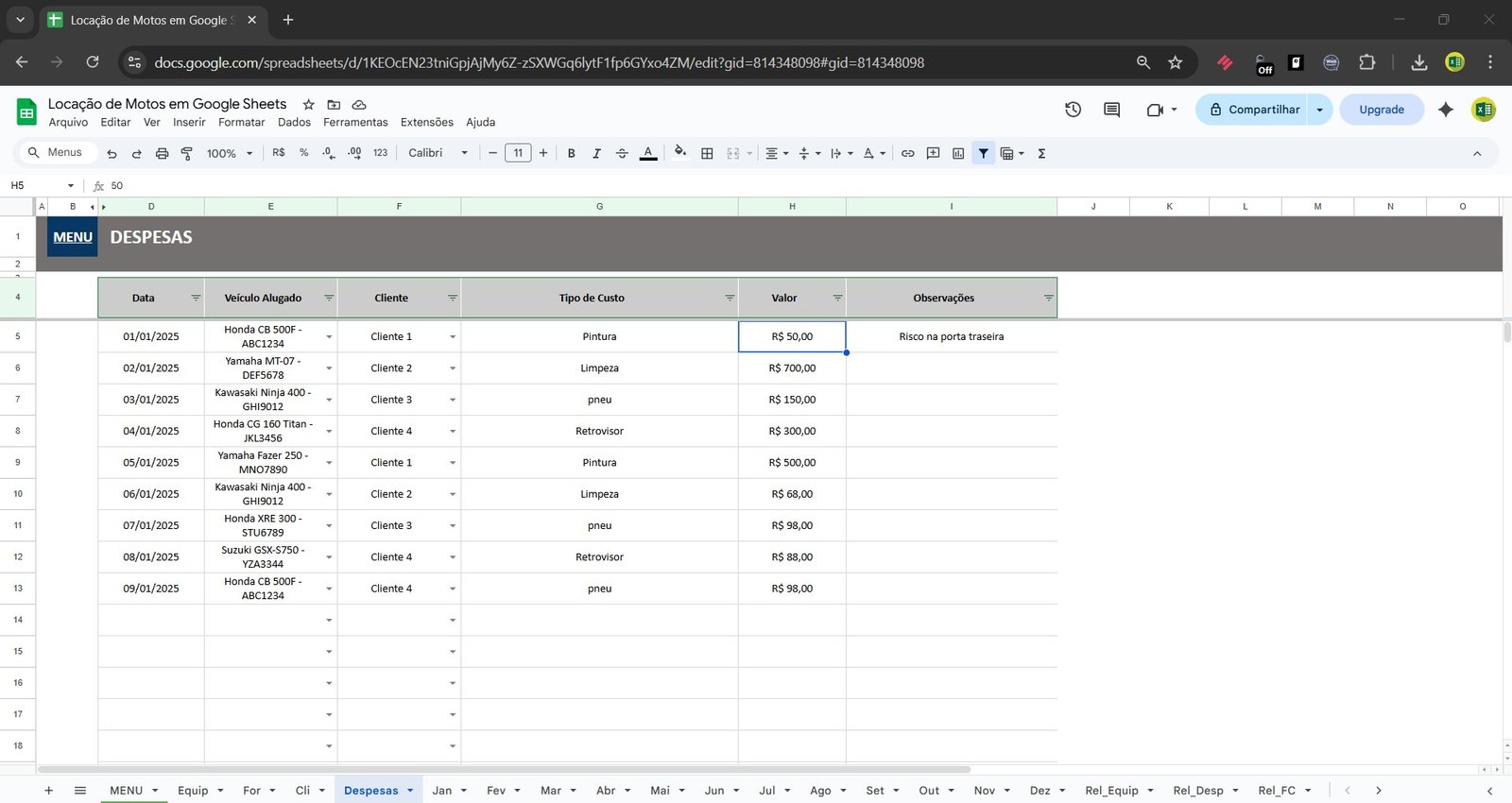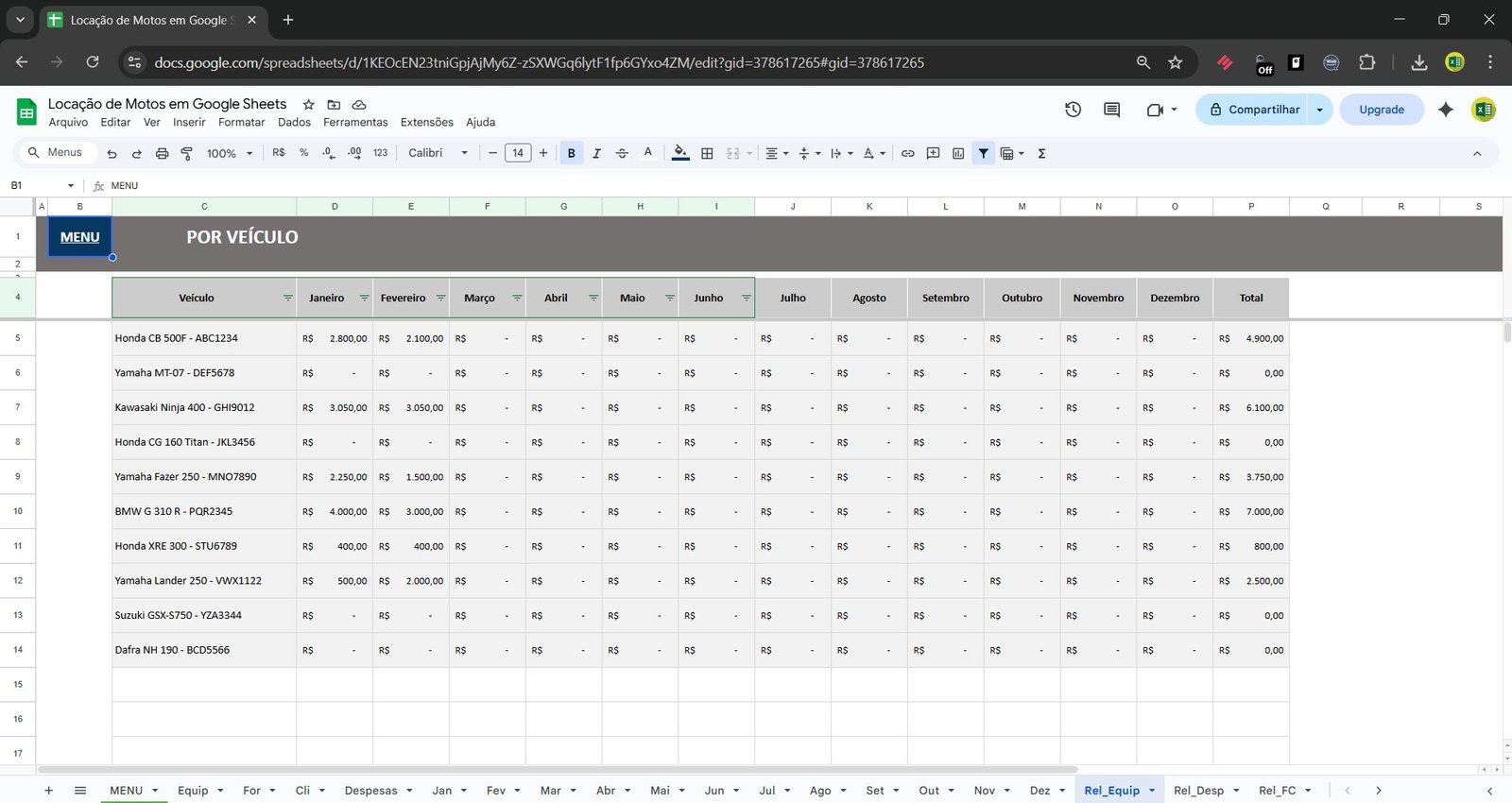 🏍️ Planilha de Locação de Motos no Google Sheets – Controle Completo da Sua Locadora
