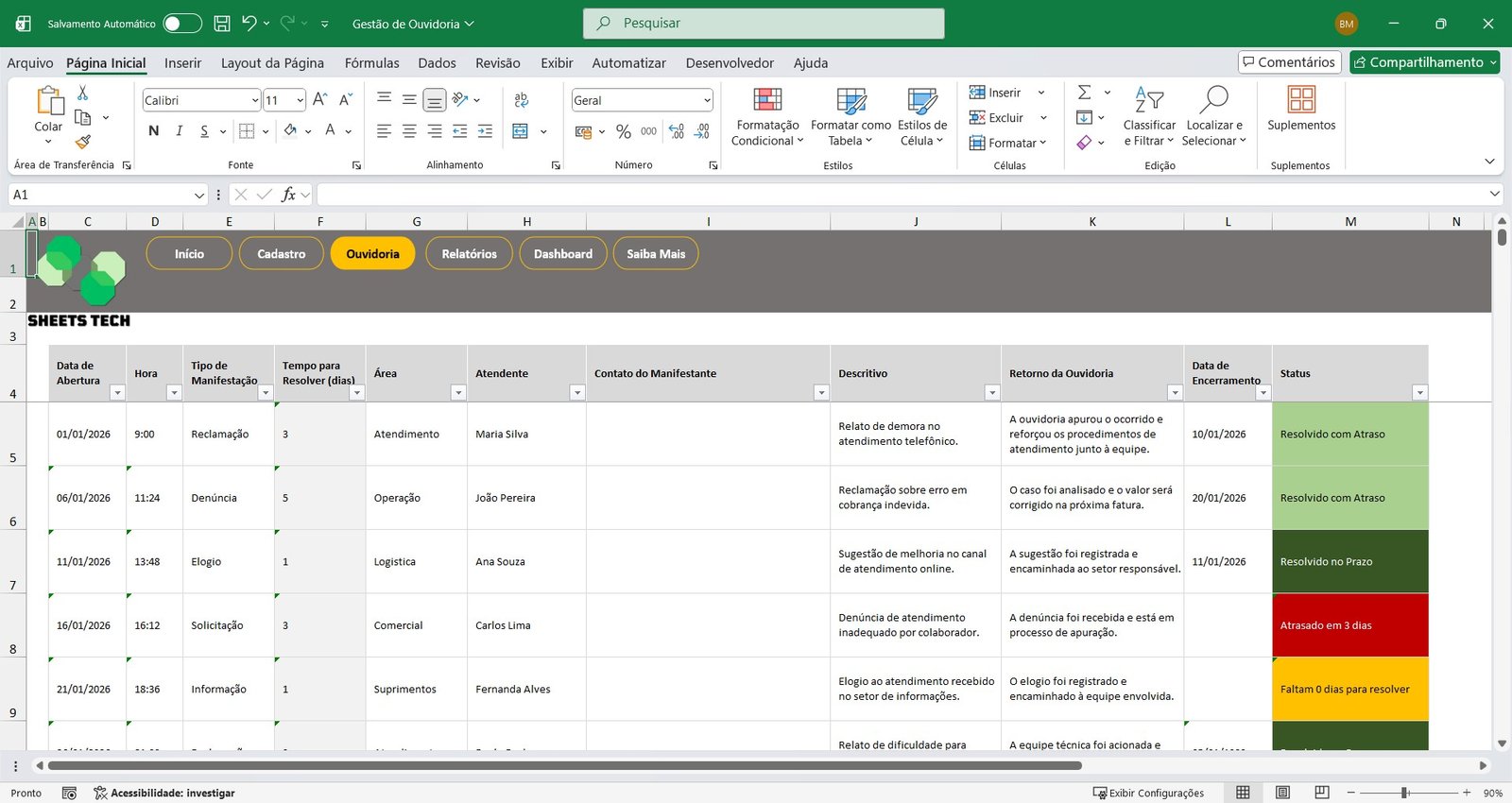 Principais Benefícios da Planilha de Gestão de Ouvidoria