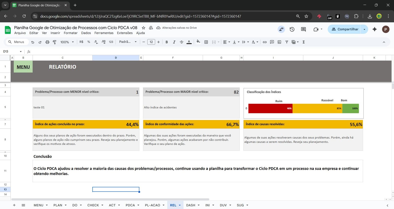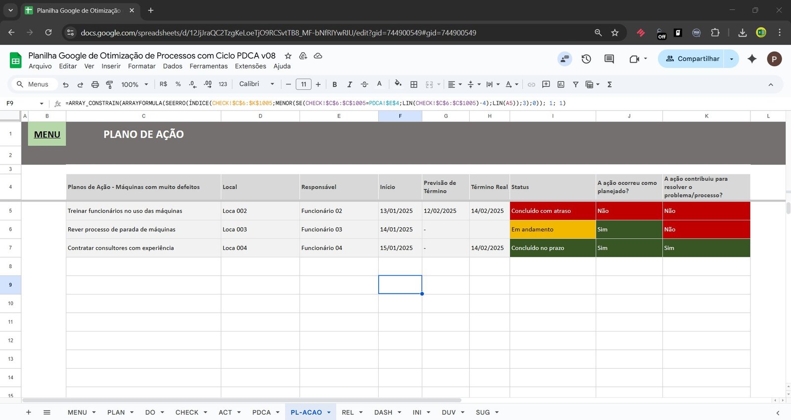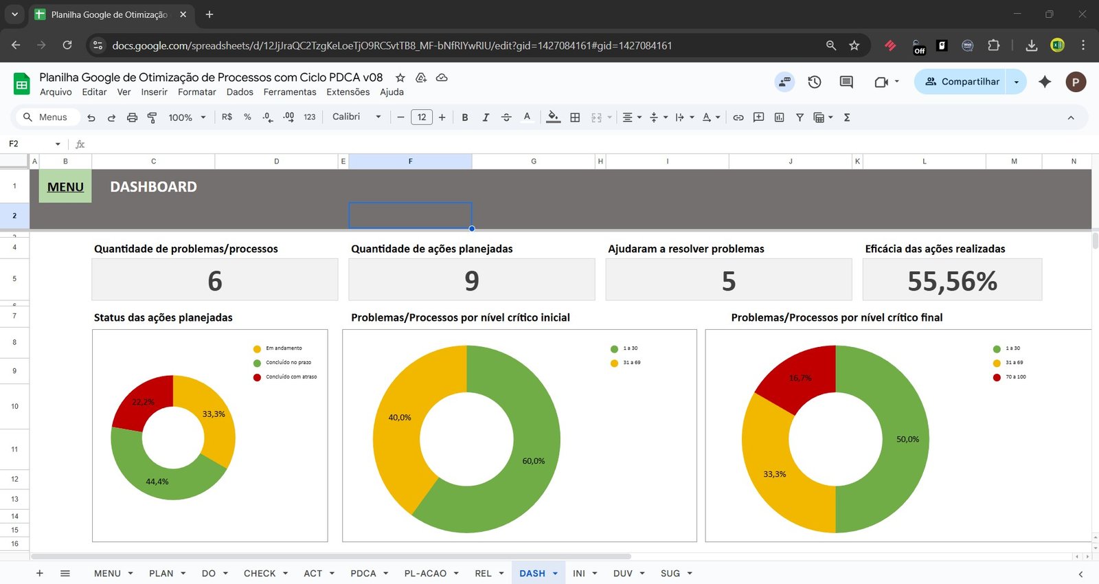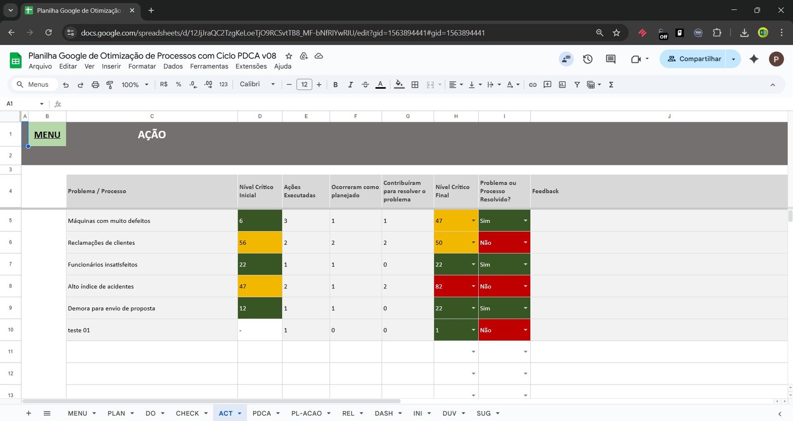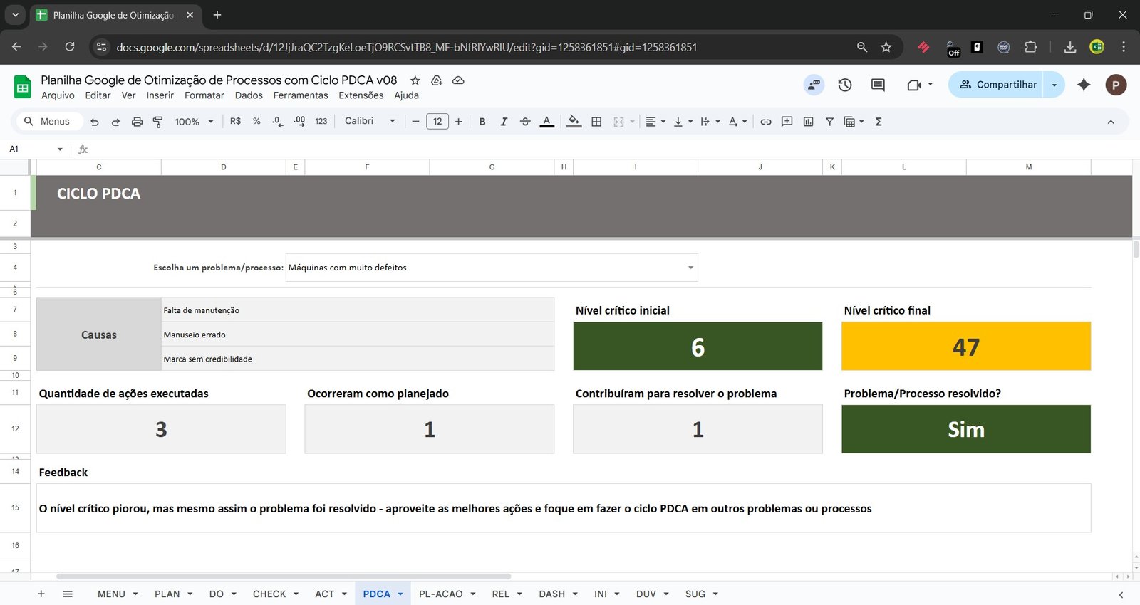 Planilha PDCA Automática no Google Sheets para Gestão de Processos e Melhoria Contínua
