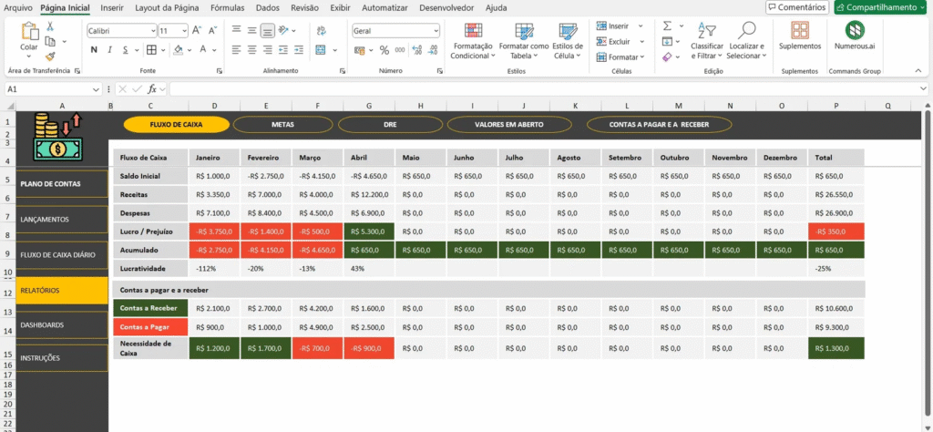Você sabe qual será a situação financeira da sua empresa nos próximos meses? Se a resposta é “não”, é hora de focar na projeção de fluxo de caixa. Essa prática não apenas oferece uma visão clara sobre as finanças futuras, mas também possibilita decisões estratégicas fundamentadas. Com uma planilha de Excel bem estruturada, você pode transformar dados em insights valiosos para o seu negócio.