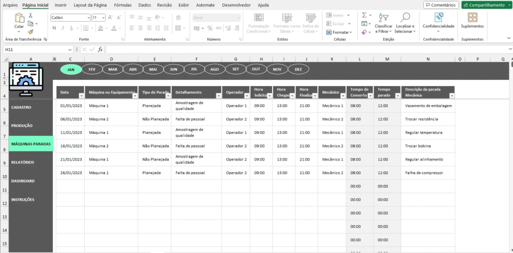 Muitas empresas criam suas próprias planilhas de controle de paradas de equipamentos, mas a maioria falha devido a: