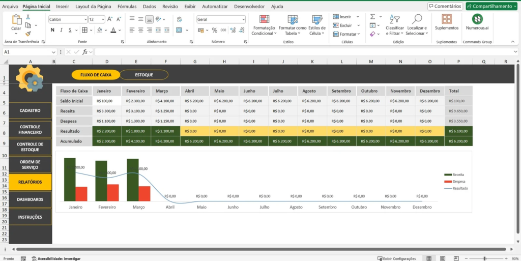 - Controle Financeiro: Monitore receitas, despesas e lucros com precisão, evitando surpresas desagradáveis.