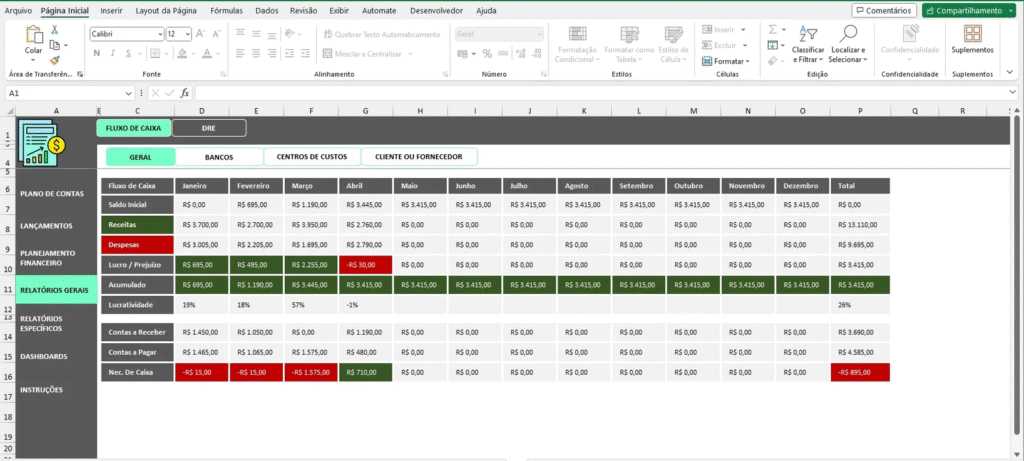 A Planilha Controle Financeiro Completo Com Centro de Custos resolve esses problemas com uma solução personalizada, fácil de usar e rica em recursos visuais.